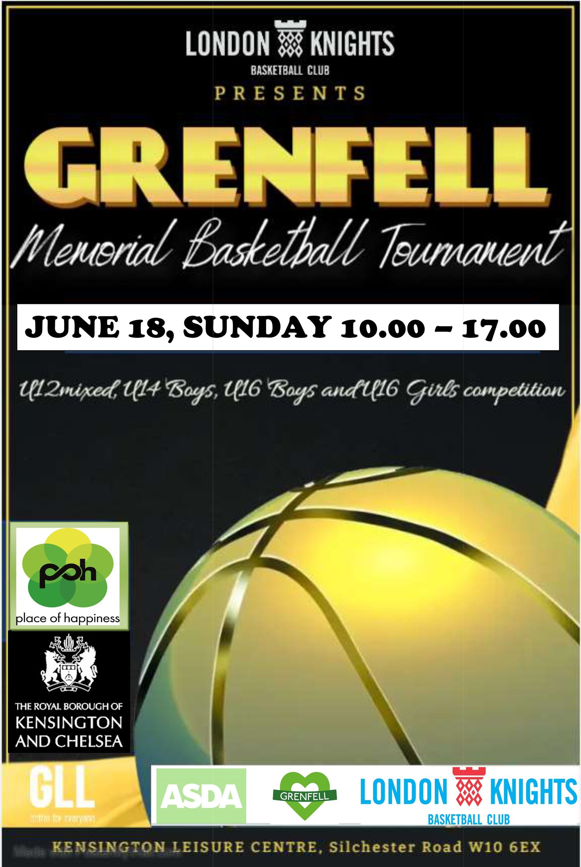 Grenfell Basketball Tournament aims to bring together children from the local basketball Clubs, their parents, relatives, neighbours (who live at the footstep of Grenfell Tower) and any other RBKC resident interested in sport. This tragic event has shaped the lives of so many of our junior members who live in the vicinity of Kensington LC and Grenfell Tower. Vast majority of children are from the local primary schools (Thomas Jones, Oxford Gardens, Bevington Primary, Colville Primary, Fox Primary, St Mary's Abbots, St Barnabas School etc...) and secondary schools (St Charles School, Kensington Aldridge Academy, Holland Park School, Chelsea Academy, Thomas Moore School etc...).